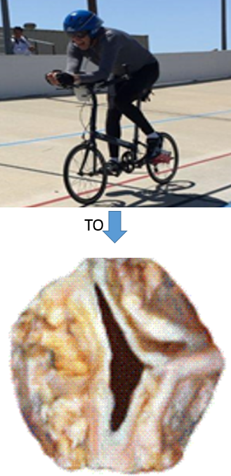 Mine was already like the middle picture, where the blood flow to my entire body had to squeeze through one of the fat straws for a Starbucks frappuccino instead of a garden hose. Later it would progress to the right picture, as small as a regular drinking straw. The first follow-up test was a treadmill stress test where they take your ekg while ramping up the speed and incline of the treadmill every couple of minutes. I ended up running briskly up a steep grade with my heart rate at 171, so I thought I had passed with flying colors. But my cardiologist noticed some arrhythmias at higher heart rate and said I could still exercise but keep it under 145. I started to monitor that with an old-school heart monitor with a chest strap. Next he sent me for a “calcium score” which gives an idea of how much calcium is in your coronary arteries. I flunked that test, which concerned him even more than the heart valve, because it meant I might have coronary artery disease.