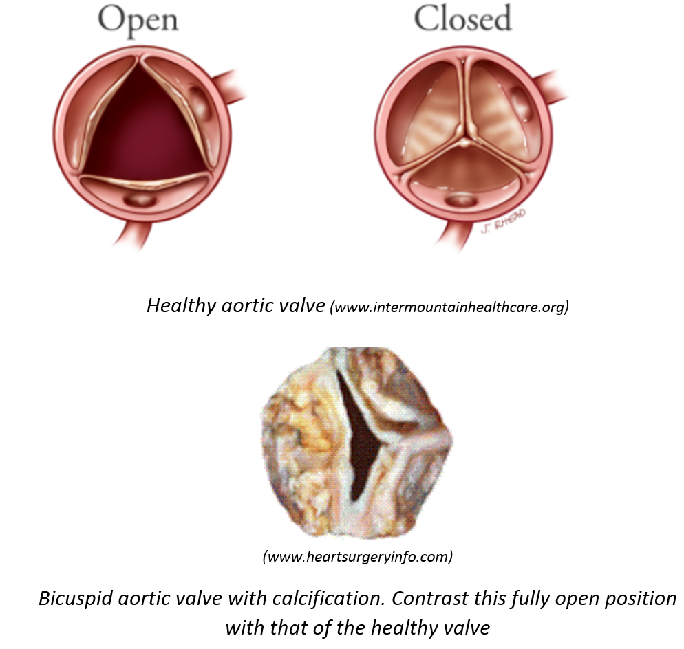 Three things can go wrong. As we age, calcium deposits form on the leaflets and they get stiffer, so the valve doesn’t open as much as it should. The second is a congenital condition where the valve has only two leaflets, known as a bicuspid valve. This does not open properly your entire life, but maybe opens enough so you get by. Then as you get older and it calcifies it goes bad more quickly than a normal valve. The first two issues cause stenosis, where the valve doesn’t open enough. The third problem is when the valve does not close properly and leaks, causing backflow, for which the medical term is regurgitation. I had stenosis but not regurgitation. My echo test could not visualize the valve well enough to tell if it was bicuspid but my cardiologist suspected it was, because I had significant stenosis already at the relatively young age of 63.