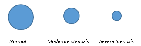 A normal aortic valve opens to about 2.5 to 4 cm2, while with moderate stenosis it is about 1 to 1.5 cm2, and it is considered severe when it goes below 1. Here’s what that amount of opening looks like:
