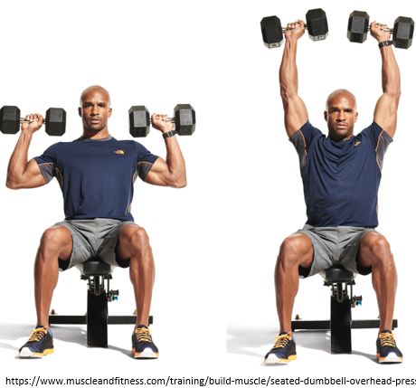 The vertical push can be done seated or standing with dumbbells:
