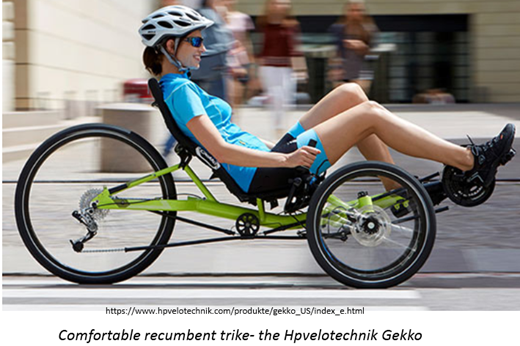 One warning is that a recumbent is not a guarantee of comfort. There is a phenomenon called “recumbutt” because you are sitting on your glute muscles, which can interfere with the blood flow to them while they are working. This can lead to restricted blood flow to the muscles (ischemia), which causes an achy feeling. I had this badly with a couple of brands, which is why long test rides are a good idea. I was fine on the Rans and Bacchetta bikes, but everyone’s anatomy is a bit different.