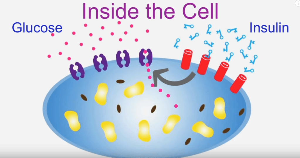 So first the basics. When food is digested our blood glucose level goes up. This signals to the pancreas to secrete insulin, which prompts the muscles and liver to receive the energy. It also prompts the fat cells to stop releasing energy, since there are readily available calories that need to be cleared from the blood. Excess glucose in the blood has various harmful side effects so it’s important for this to happen in a timely manner. In addition, the response to the excess glucose is for the pancreas to pump out more insulin, leading to elevated insulin levels in the blood, which has its own harmful effects