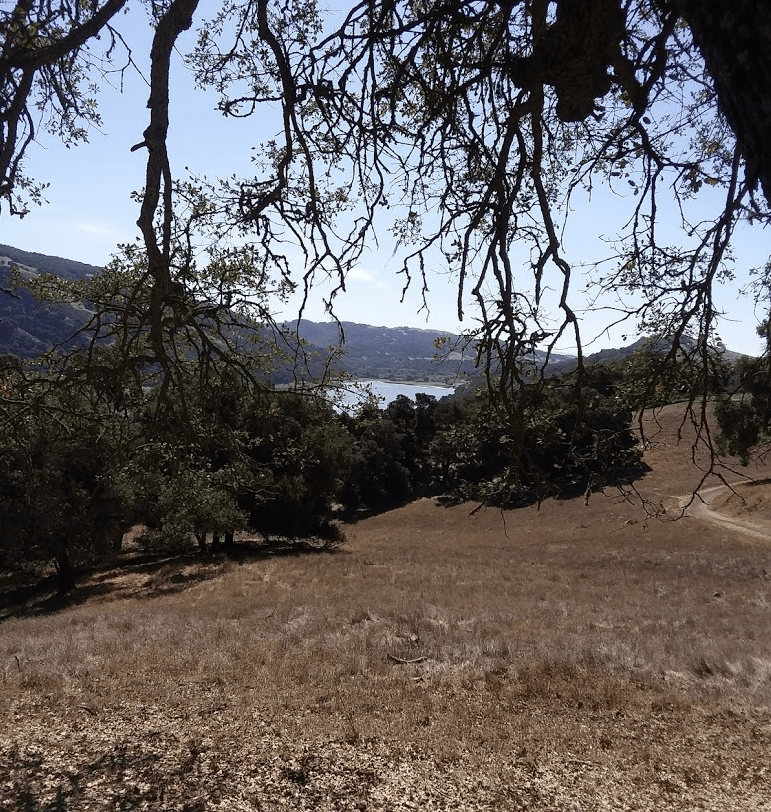 View from the top of the Willow springs trail of Coyote lake through the trees: