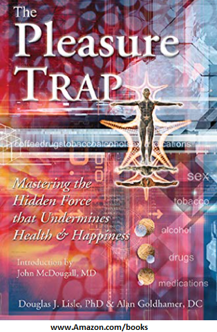 I just finished reading The Pleasure Trap by Drs. Doug Lisle and Alan Goldhamer. This is a fascinating book about factors that affect our eating behavior and the health effects of our diets, both psychological, neurological, biological, environmental, and evolutionary. The authors explain complex topics well, and sprinkle in fascinating examples and historical references to keep it entertaining. Dr. Lisle is a clinical psychologist and Dr. Goldhamer both a Chiropractor and Osteopathic Doctor. They work together at TrueNorth Health Center in Santa Rosa, California. I learned about them though Chef AJ, who considers them to be mentors.