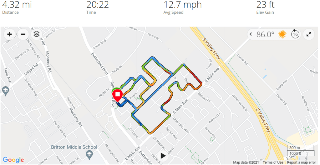 I was already toying with the idea of canceling the Sacramento century and just doing one from home. With GPS, it’s not really necessary to do an organized challenge because you have your training log to show what you have done. But what was really driving this is that the air quality out in the central valley, including the Sacramento area, has been poor lately because of the large wildfires that are still not contained. There’s a good chance this will not have resolved itself by early October when the Sacramento century is scheduled. In contrast, where I live, we are fortunate enough to often have a prevailing wind bringing clean ocean air inland, so our air quality has been much better.