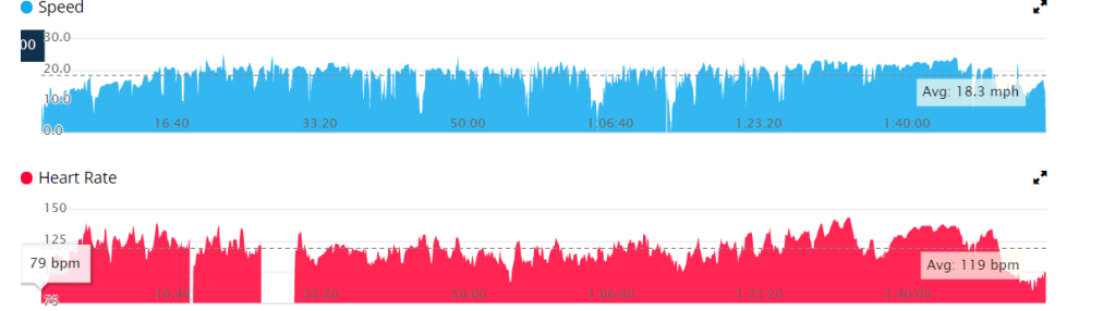 Cottonwood Lake in Hellyer Park on ThursdayThursday, Out and Back to Hellyer Park on Coyote Creek Trail On Recumbent. Electric assist level 1 mostly. I was into a bad headwind and afraid I’d be later for an appointment on the way back, so I bumped up the assist. I was shooting for an average heart rate of 120, with higher during intervals on the way back, so I hit that target fairly well.