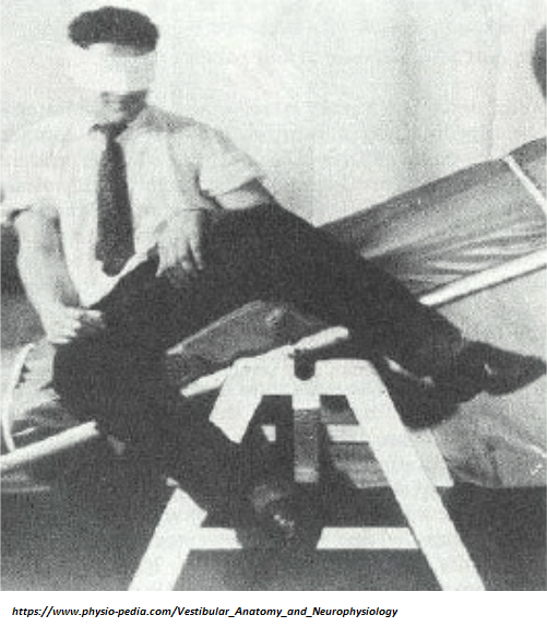 The semicircular canals are oriented at right angles to each other in three planes, so can sense your head rotating as it tilts to either side (moving the right ear towards the right shoulder, for example), tilts forward or back, or twists. This is vital in stabilizing your gaze, like “dynamic image stabilization” in cameras. As you twist side to side while looking at a screen, you may notice the image is not bouncing all over but is pretty stable. There is an eye reflex that helps counter the effect of the motion (the “Vestibular Ocular Reflex”), and a neck reflex that works to keep the head stable (the “Vestibulocollic Reflex”). A third reflex of spinal muscles helps with balance (the “The Vestibulospinal Reflex”). In all of these reflexes, the muscles are directly driven by the signal from the inner-ear sensors, without involving the brain. This is much like the “knee-jerk” reflex when the doctor whacks your knee with a little hammer.